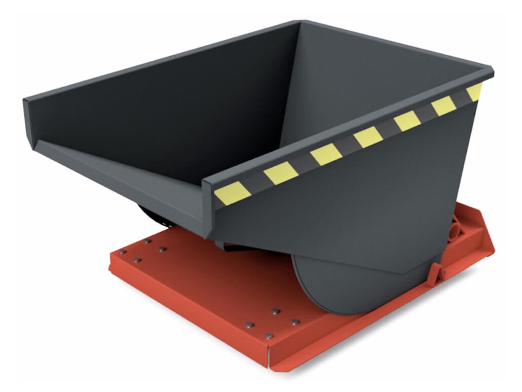 Der in eigener Produktion gefertigte Bartels Mini-Kippbehälter entleert sich selbst, richtet sich selbst auf und verriegelt sich selbst.
