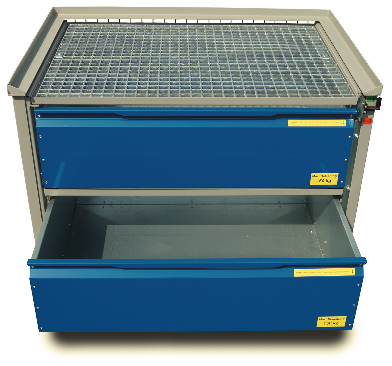 - Schubladen mit Gitterrost und/oder Gitterbox mit kompletter Blechverkleidung