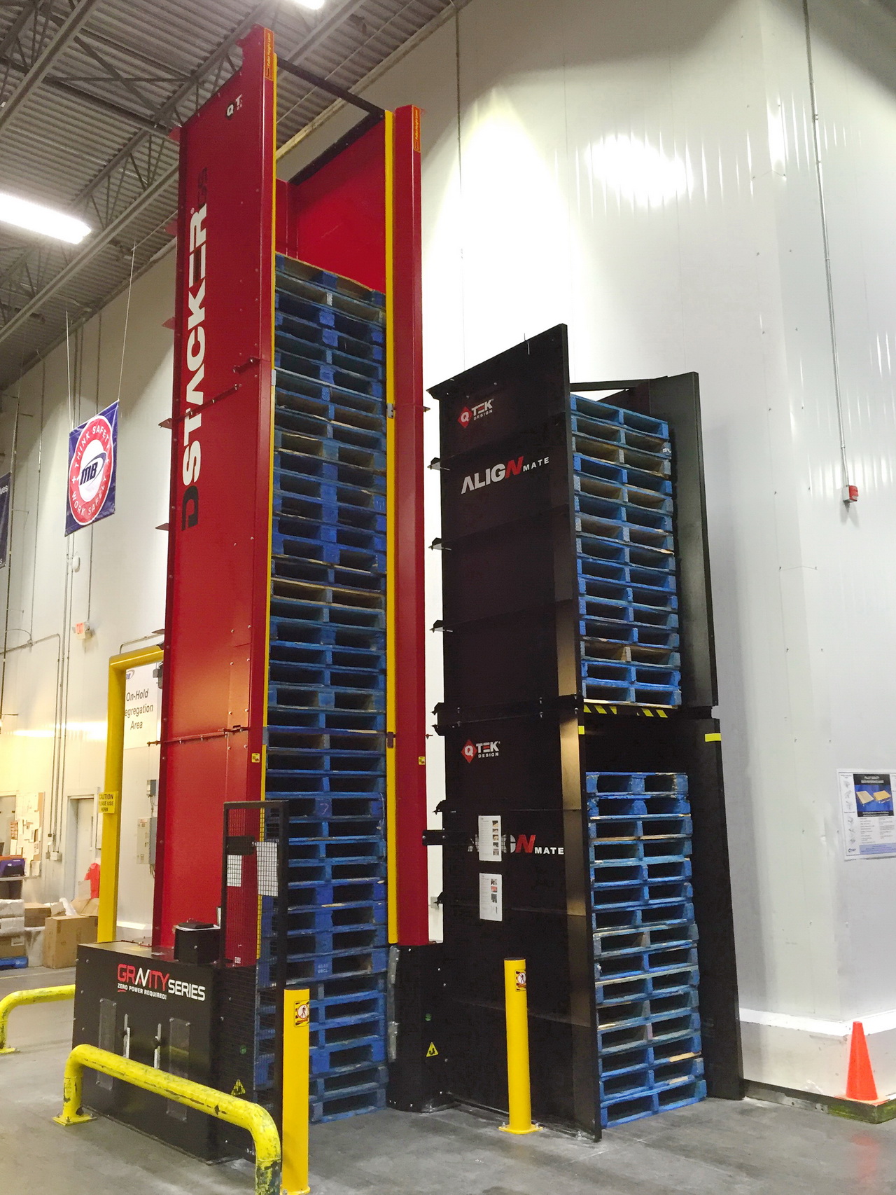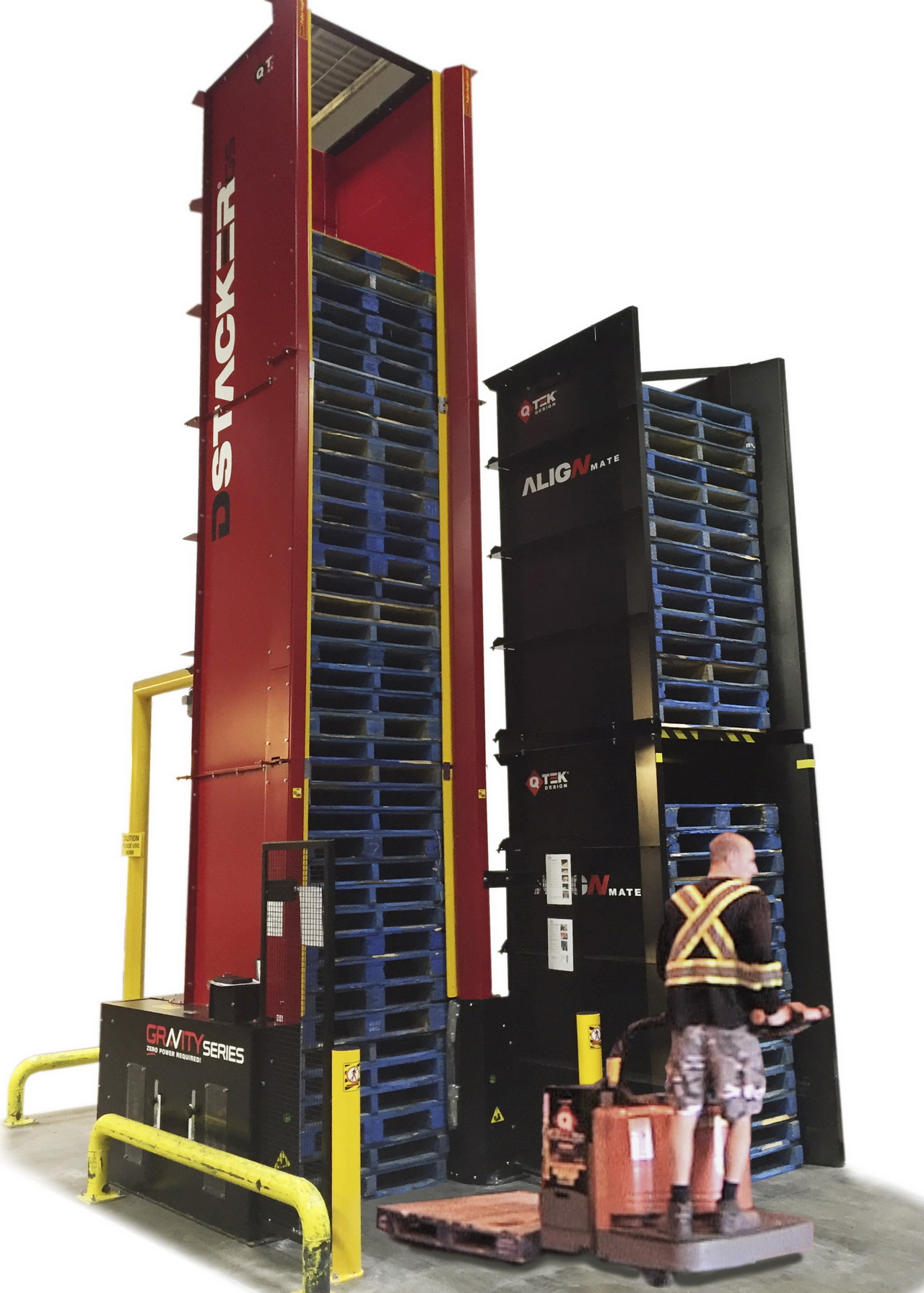 Weitere Vorteile: Paletten werden platzsparend gelagert, Hand- oder Rückenverletzungen durch manuelles Palettenhandling vermieden, Paletten werden sicher verstaut und Schäden durch herunterfallende Paletten reduziert.