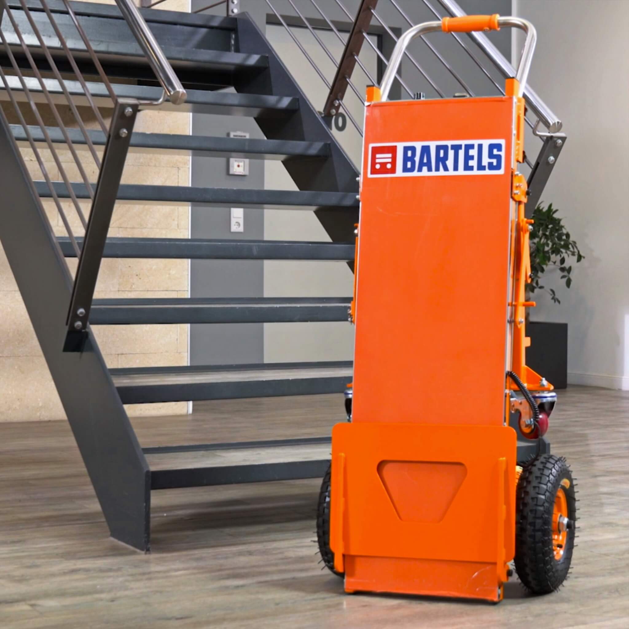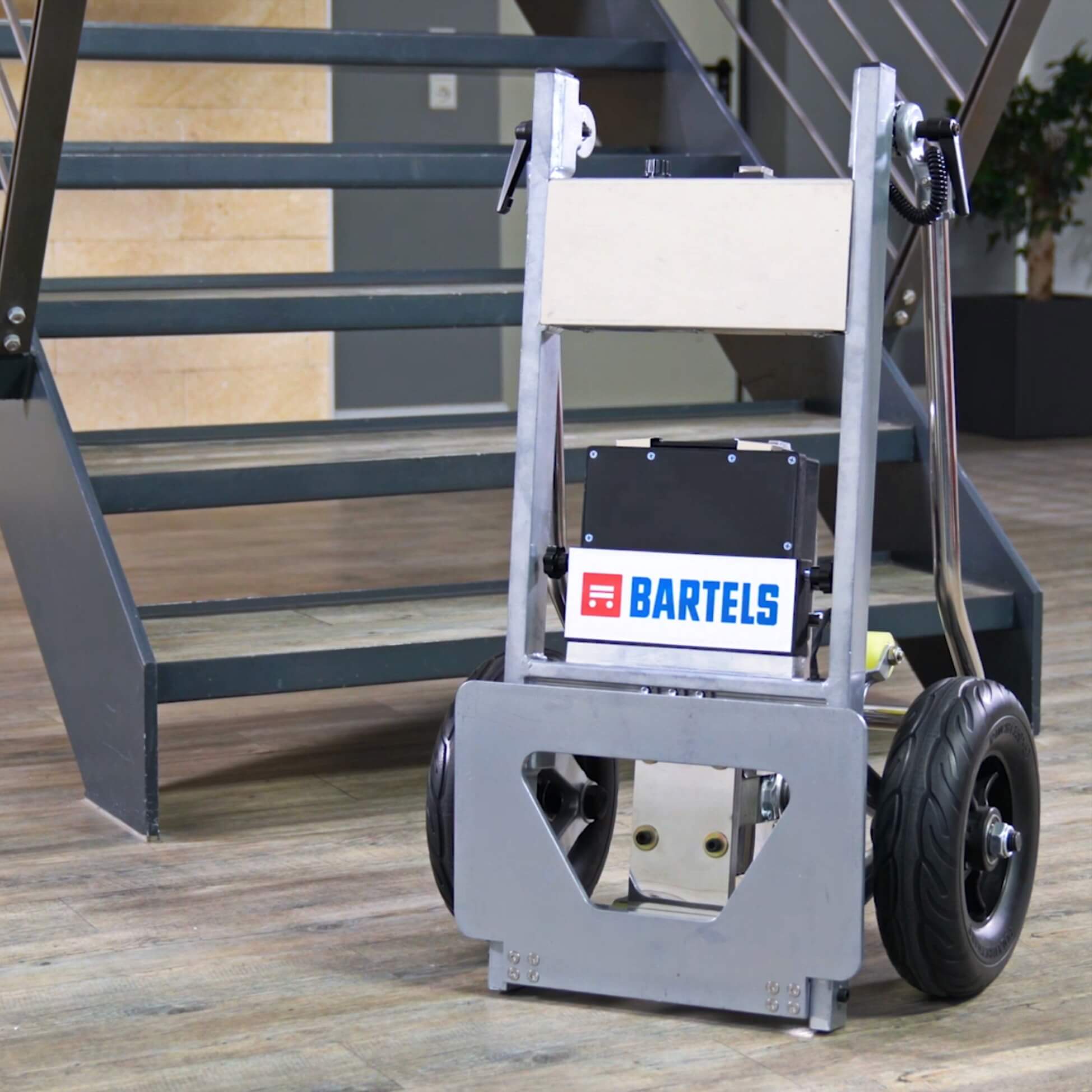 Auf der LogiMAT 2022 präsentiert Bartels nun erstmals zwei eigene Geräte. Sie zeichnen sich jeweils durch ein geringes Eigengewicht sowie einen starken Motor aus, der sicheres Manövrieren auf der Treppe bei hoher Traglast ermöglicht. Die Geschwindigkeit lässt sich manuell regulieren und durch einen Sanftanlauf sind beide Modelle besonders anwenderfreundlich. Für einen platzsparenden Transport lassen sie sich einfach zusammenklappen.
