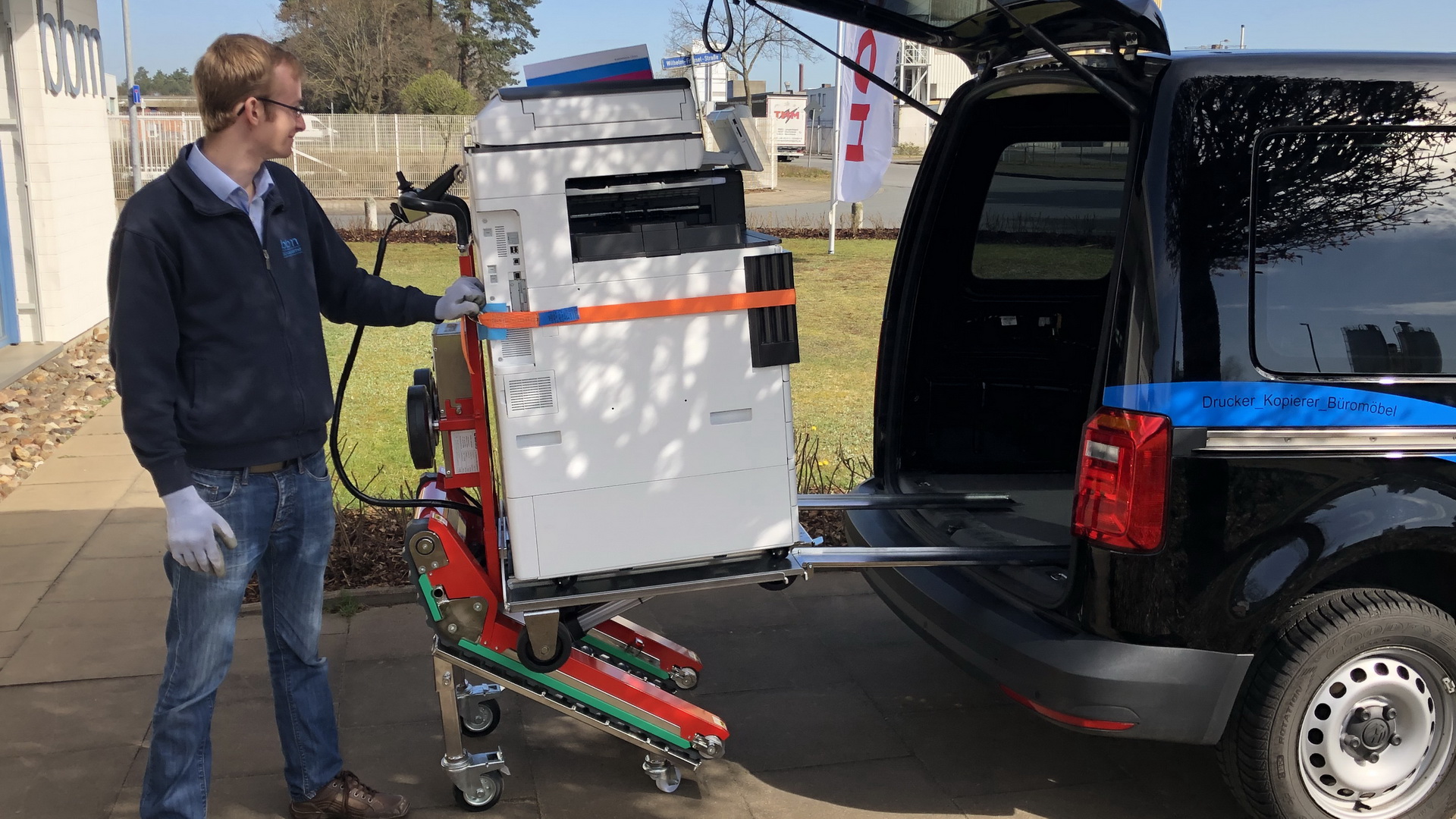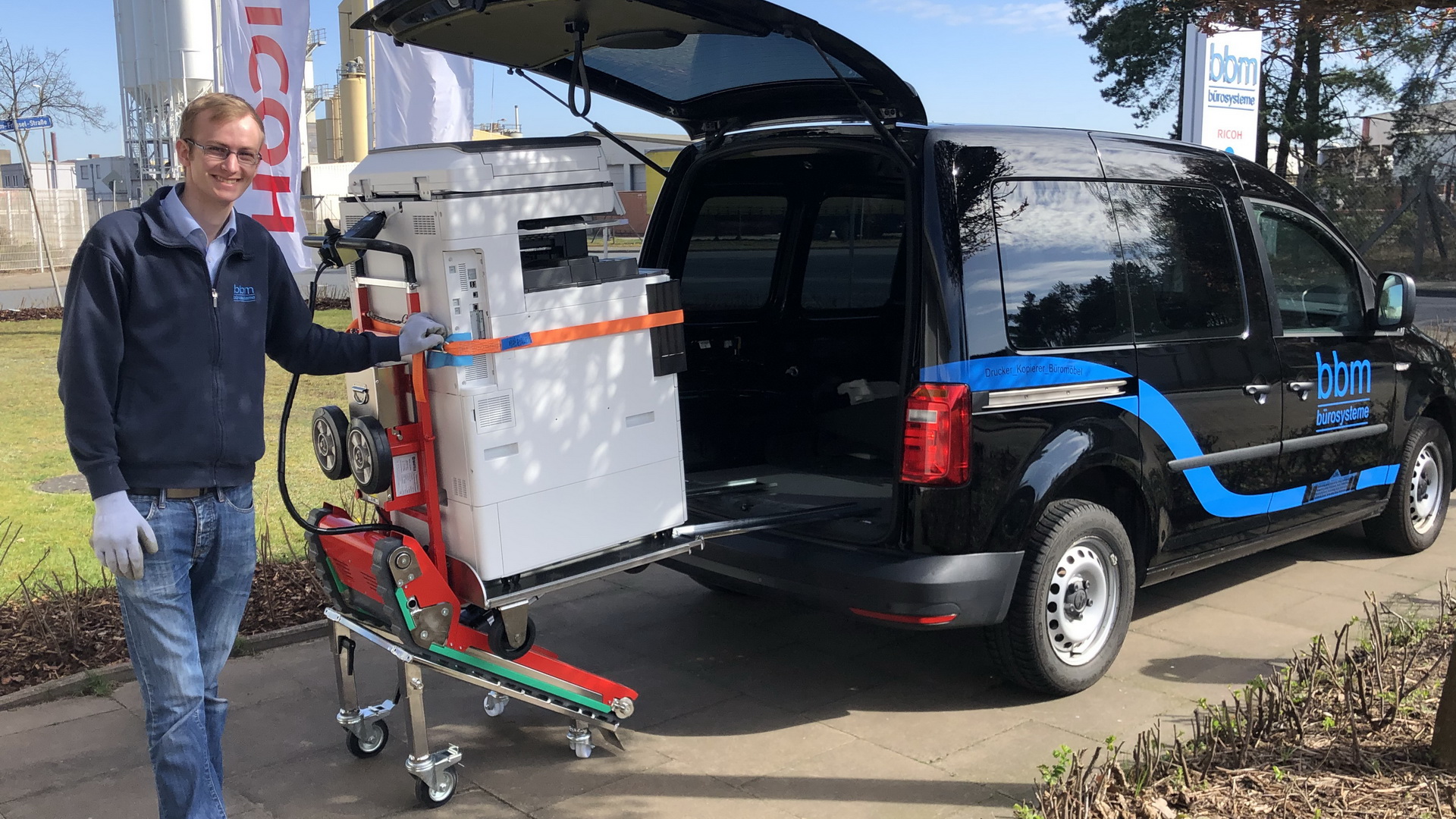 In Zeiten von Corona verändern sich allerorts die Arbeitsbedingungen. Kaum ein Unternehmen, das nicht von den Auswirkungen der aktuellen Pandemie und den eindämmenden Maßnahmen beeinflusst wird. Um Kunden weiterhin mit Fotokopierern und anderen schweren Geräten beliefern zu können, hat sich bbm-bürosysteme vor Kurzem für einen Treppensteiger von Bartels entschieden.