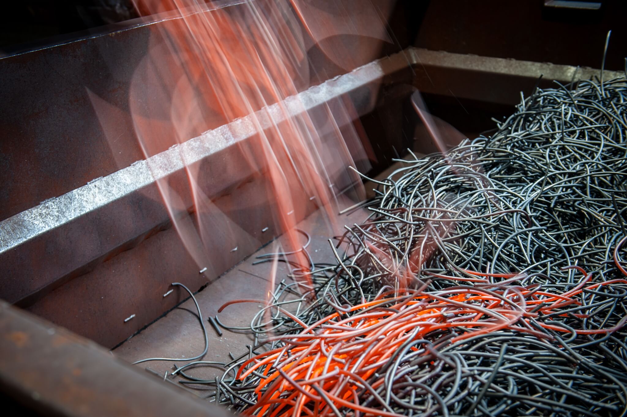 Es ist laut, sehr laut in den Hallen von ArcelorMittal Hamburg, einem von rund 60 Standorten des größten Stahlkonzerns der Welt. 24 Stunden am Tag, 365 Tage im Jahr ist hier Betrieb. Wie am Fließband erzeugen die über 500 Mitarbeiter in der Hansestadt jedes Jahr ca. 1 Million Tonnen Stahl. Dazu werden im Stahlwerk Eisenschrott und Eisenerz bei 1.900°C eingeschmolzen und der flüssige Stahl anschließend zu Knüppeln vergoßen. Bis zu 16 Meter lange und 2 Tonnen schwere Stahlknüppel entstehen auf diese Weise. Im Walzwerk werden die Knüppel anschließend zu Walzdrähten weiterverarbeitet. Hierzu muss der Stahl wieder auf 800 – 1.000°C erhitzt werden, bevor die mächtige Maschine den Draht auf eine Dicke von 5,5 bis 16 mm bringt. Für ein ebenmäßiges Ergebnis werden die Enden ganz zum Schluss abgetrennt. Sie fallen beinahe im Sekundentakt, noch bis zu 700°C heiß, in Behälter, die sich bei Normalbetrieb innerhalb von 30 Minuten füllen.
