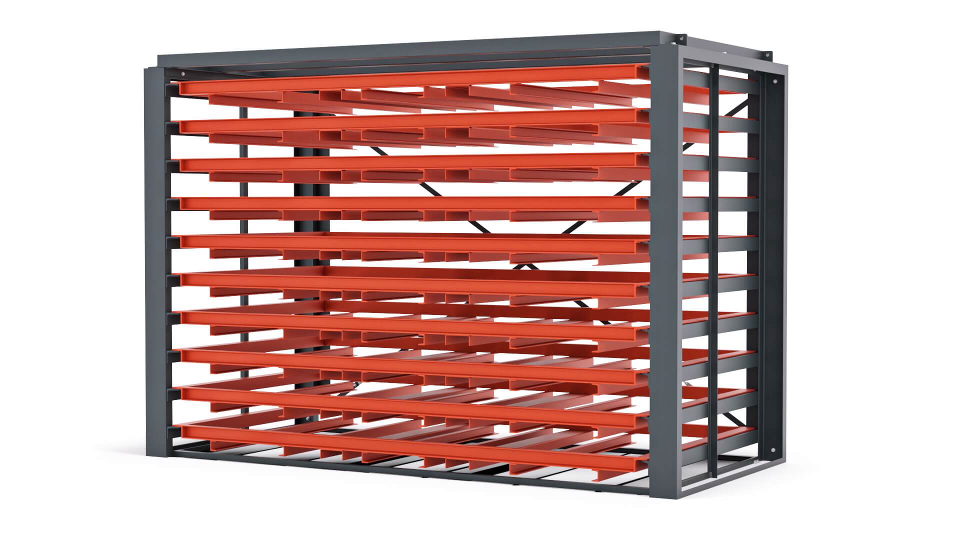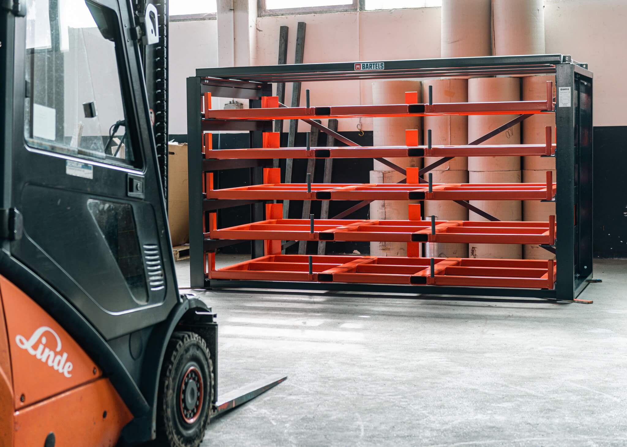 Mit dem Flachpaletten-Magazin von Bartels können Sie das Tafelmaterial zentral einlagern.