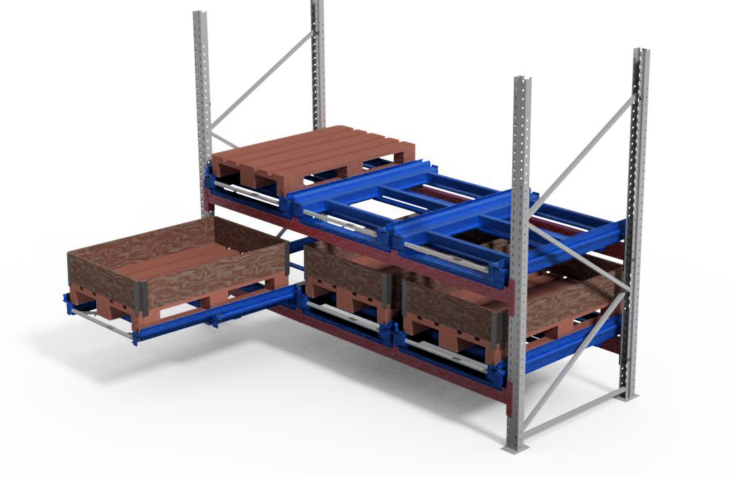 Tragfähigkeit des Palettenregals: Bei einseitigem Auszug muss die Fronttraverse eine höhere Tragfähigkeit als die Schubfach-Last haben.