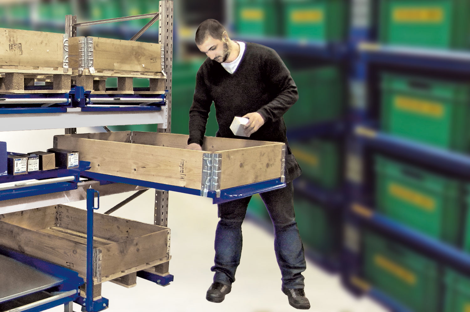 Grundsätzlich gilt: Pro Feld (mehrere Schubfächer übereinander) darf immer nur ein Schubfach zur Zeit ausgezogen sein. Eingeschobene Schubfächer müssen sicher verriegelt sein. Das Palettenregal muss im Boden verankert sein. Die Traversen müssen mit dem Rahmen verschraubt sein.