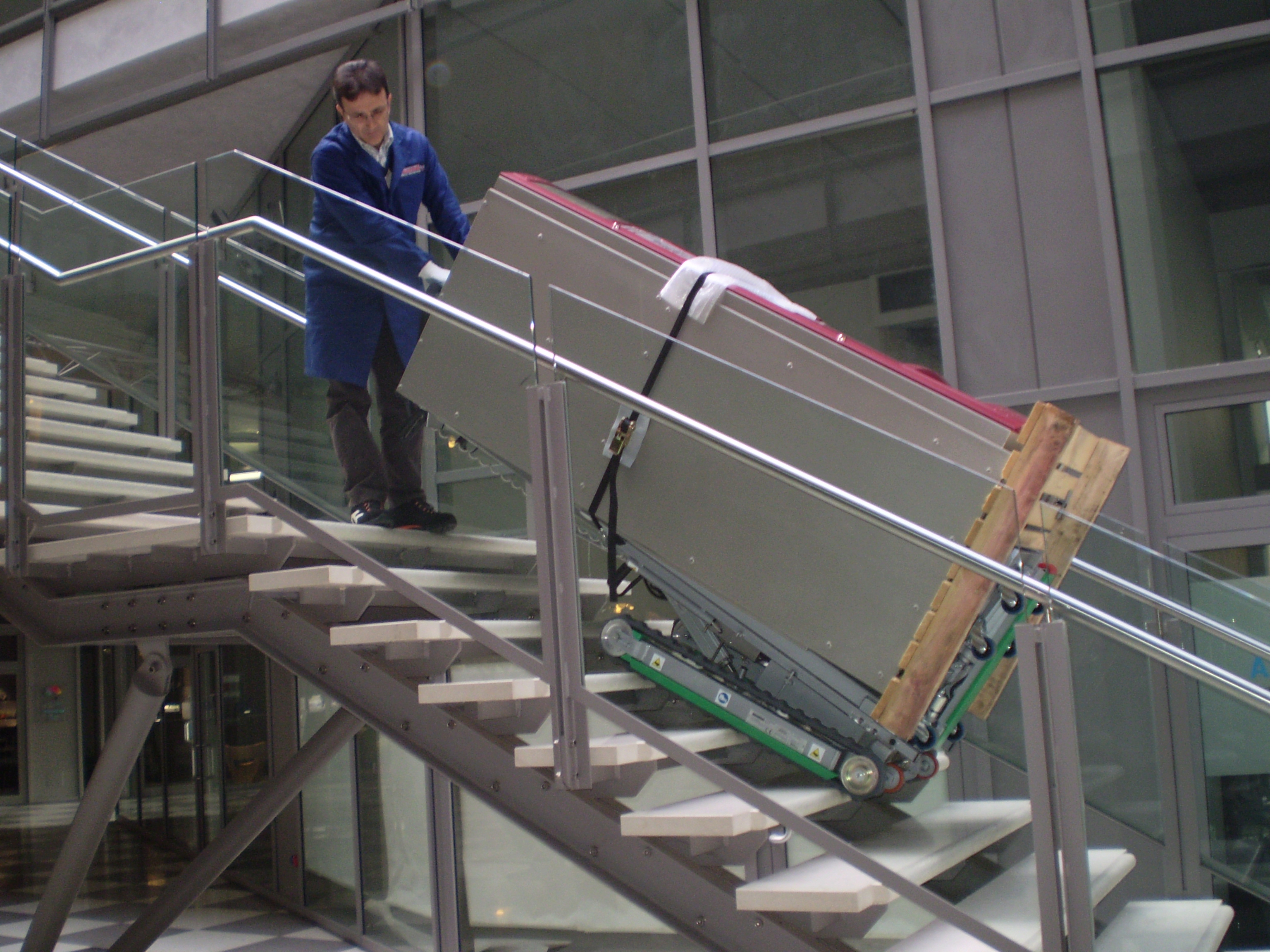 Mit ihnen ist ein Mann so stark wie drei – Treppensteiger. Die Karl H. Bartels GmbH hat mit dem Treppensteiger Skipper von Zonzini nun den Klassiker unter den elektrischen Sackkarren ins Sortiment aufgenommen. Fotokopierer, Gefrierschränke, Klimaanlagen, Heizöfen oder sperrige Möbel lassen sich damit problemlos durch einen einzelnen Mitarbeiter ausliefern.